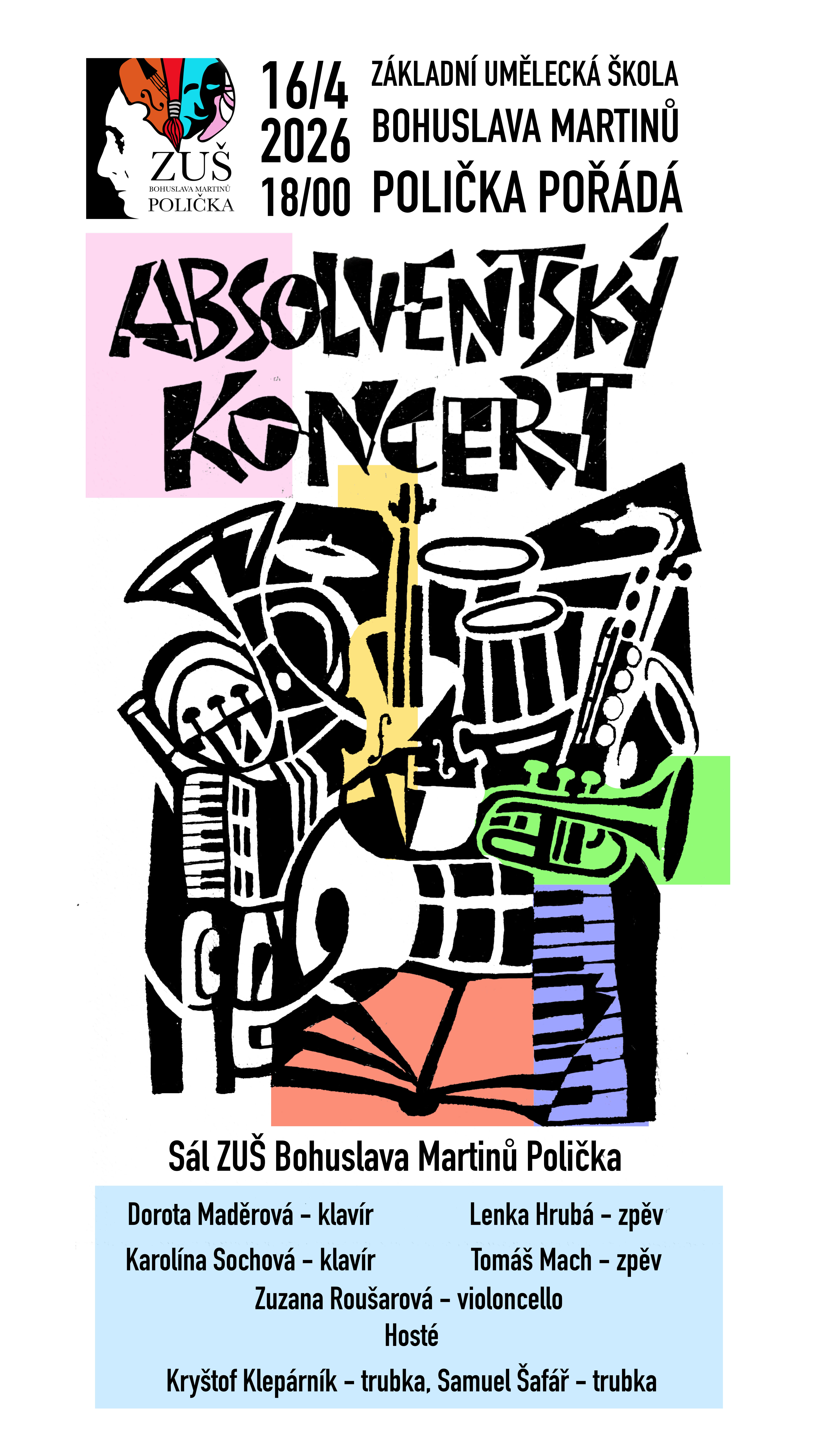 Jarní koncert máme úspěšně za námi (fotodokumentace na FB školy), a tak nás čeká další tradiční březnová akce, a to Koncert učitelů. Dne 26. 3. 2026 od 17 hodin se ve velkém sále Tylova domu představí pedagogové ZUŠ B. Martinů Polička v nejrůznějších seskupeních s velmi pestrým, chvílemi až překvapivým programem :-) Věděli jste například, že všichni pedagogové výtvarného oboru hrají na hudební nástroj? Chcete slyšet pohromadě 9 pedagogů s melodií, kterou dost pravděpodobně znáte z filmového plátna? To, a mnohem více ve čtvrtek 26. 3. 2026 - těšíme se na Vás!